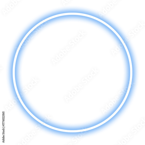 Glowing blue neon circle isolated on transparent background