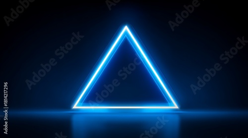 Glowing Blue Neon Triangle Shape on Dark Reflective Surface with Futuristic Lighting