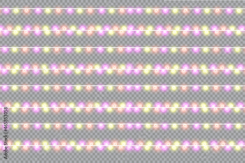 Glowing Christmas lights isolated realistic design elements. Garlands, Christmas decorations. lights effects.