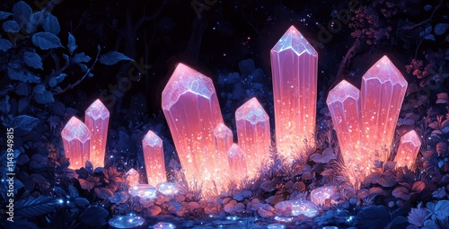 Glowing Crystals in a Mystical Forest - A Dreamlike Landscape