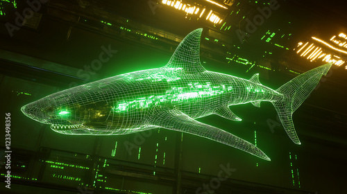Glowing Digital Shark in Technological Network