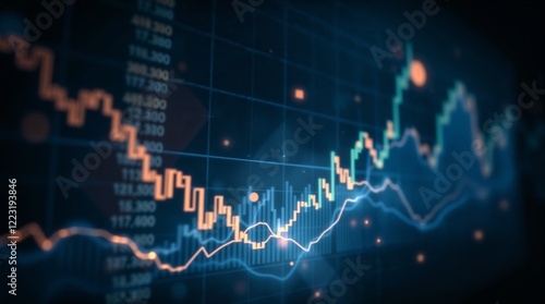 Glowing financial charts and graphs in dramatic cinematic style, bright lens flare, vibrant colors, emphasizing business growth and success