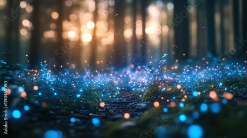 Glowing Forest Path, Magical Sunset, Nature Scene