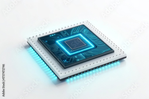 Glowing Futuristic AI Microchip Displayed In Neon Blue Light