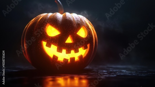 Glowing jack-o'-lantern pumpkin for Halloween on transparent background
