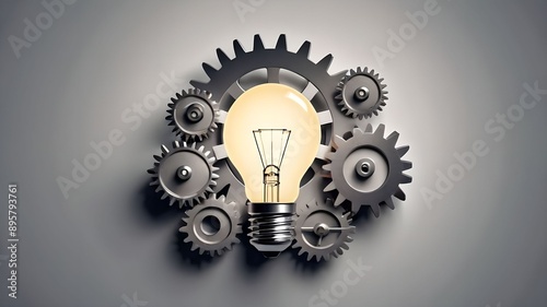 Glowing light bulb and cogwheel gears illustration background. Engineering mechanism settings, copy space, intelligence and creativity power, empty space, space for space