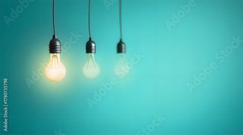 Glowing Light Bulb on Turquoise Background with Copy Space