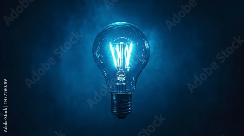 Glowing lightbulb against a dark blue smoky background.