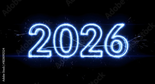 Glowing neon 2026 year on a dark background