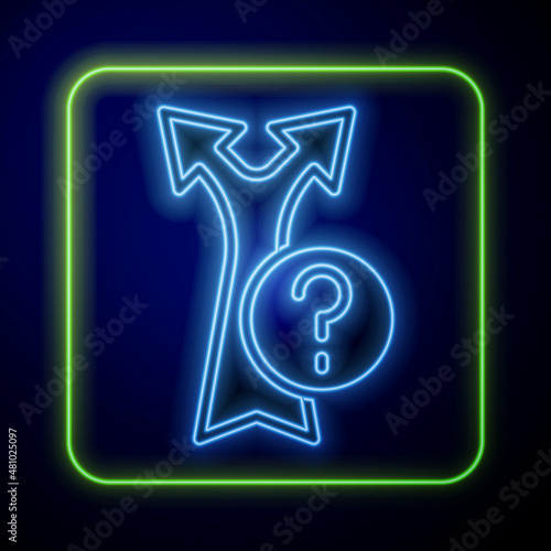 Glowing neon Arrow icon isolated on blue background. Direction Arrowhead symbol. Navigation pointer sign. Vector