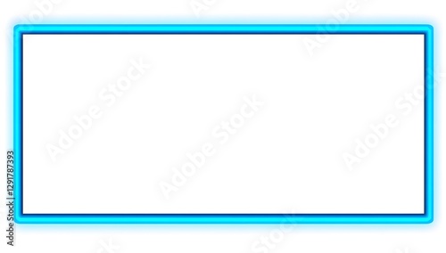 Glowing neon blue rectangular frame, abstract light effect on white background