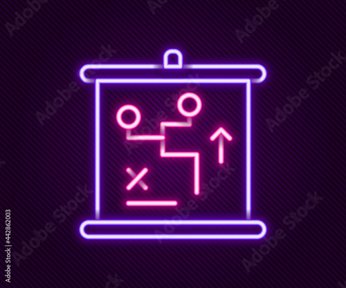 Glowing neon line Planning strategy concept icon isolated on black background. Cup formation and tactic. Colorful outline concept. Vector