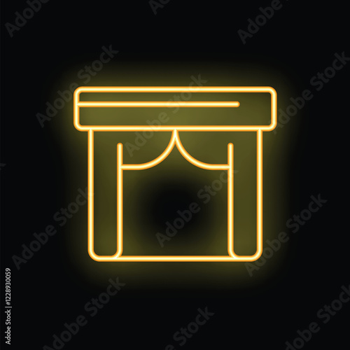 Glowing neon line stage with curtains icon isolated on black background. Vector illustration