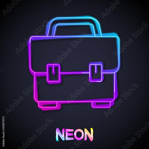 Glowing neon line Toolbox icon isolated on black background. Tool box sign. Vector