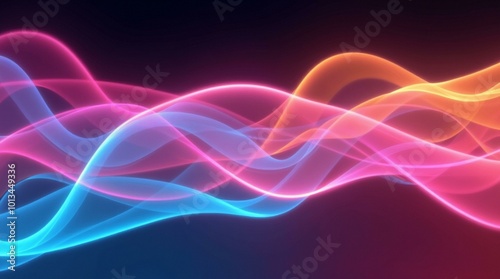 Glowing pink and blue light waves on a dark background.
