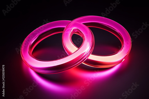 glowing pink and red rings, intertwining in a smooth loop, with soft transitions between hues creating an ambient, harmonious atmosphere.