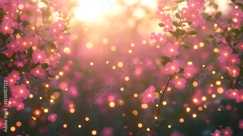 Glowing Pink Flowers Illuminated At Sunset