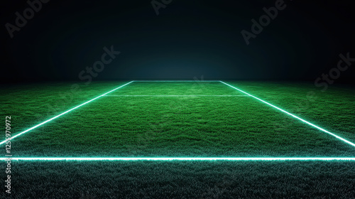 glowing tennis court with vibrant green grass and illuminated lines creates energetic atmosphere