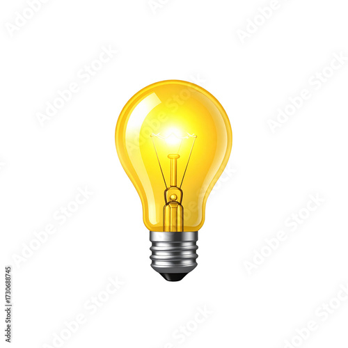 Glowing Yellow Light Bulb Icon Representing Bright Idea, Isolated on Transparent Background