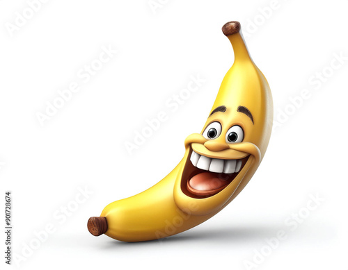 glückliche Banane mit lachendem Gesicht, isoliert auf weißen Hintergrund, Freisteller