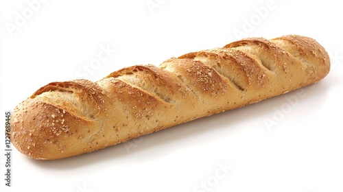 Gluten Free Baguette with Cracked Crust and Dense Interior Texture on White Background for Organic Bakery Marketing