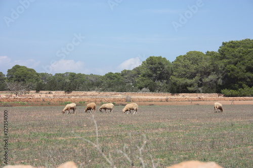 goats and sheep in the dry and barren fields of ibiza and formentera among the fig trees and the arid land