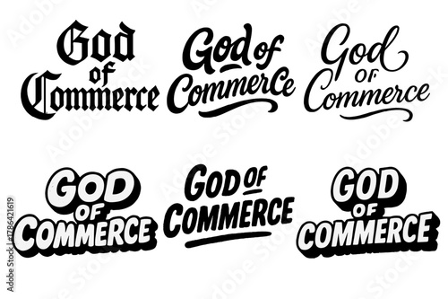 God of Commerce Lettering. God of Commerce. Set lettering. harmonious lettering variations of the same emblematic concept (Gothic-inspired decorative type,