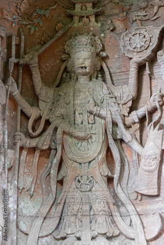 Goddess Marici or The Ray of Light Bodhisattva sculpture at Beishan Rock Carvings in Dazu, China