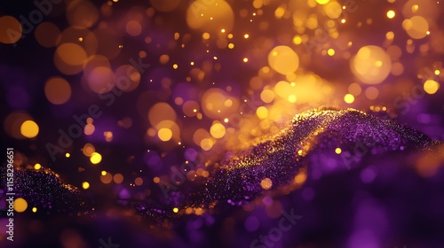 Gold and dark violet fireworks and bokeh in New Year