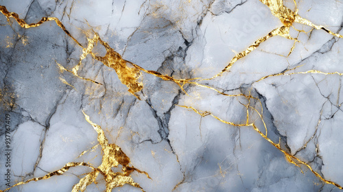 Gold and marble background with kintsugi elements. Luxury texture for design, decoration, or presentation of a natural stone surface