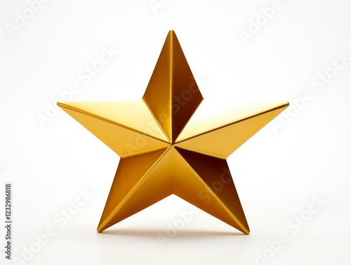 Gold Christmas Star. Isolated Macro Shot of Shiny Gold Star Shape for Holiday Decoration on White Background