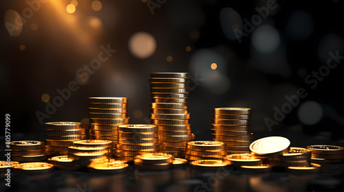 Gold coins stacked in rows background