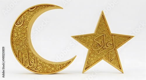 Gold Crescent Moon and Star: Islamic Symbol Illustration