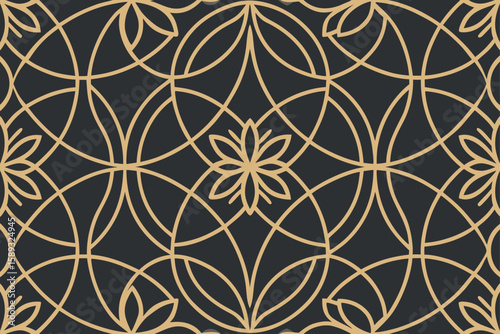 Gold geometric floral pattern on dark background seamless