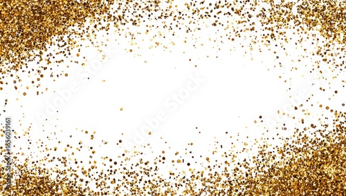 Gold glitter confetti bursts outward from a central white space