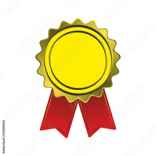 gold medal with red ribbon