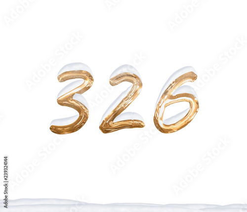 Gold Number 326 with Snow on white background