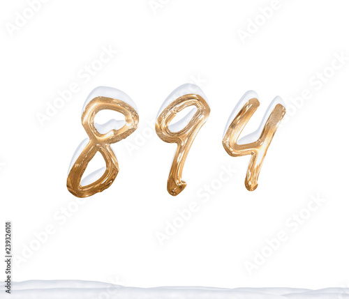 Gold Number 894 with Snow on white background
