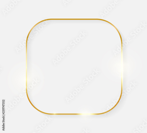 Gold shiny glowing vintage frame with shadows isolated on white background. Golden luxury realistic border. Wedding, mothers or Valentines day concept. Xmas and New Year abstract. Vector illustration