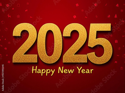 Golden 2025 Text On Red Background Celebrating New Year's Eve Festivities
