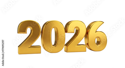 Golden 3d numbers 2026 isolated on transparent background