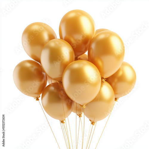 Golden Balloons Festive Decoration , PNG isolated cut out image