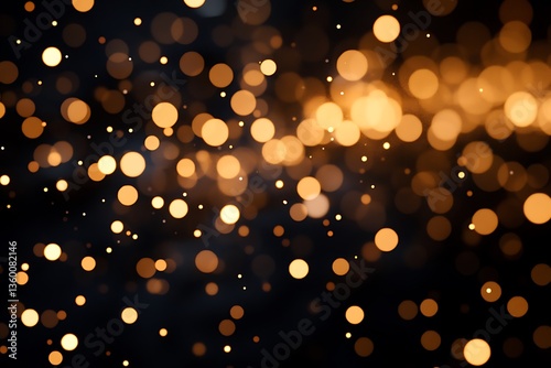 Golden bokeh lights on black background.