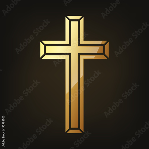 Golden Christian cross. Vector illustration.