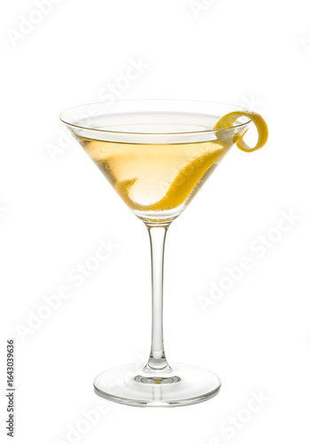 Golden cocktail in a sleek glass with a twist of lemon peel, showcasing elegance and sophistication at a stylish bar