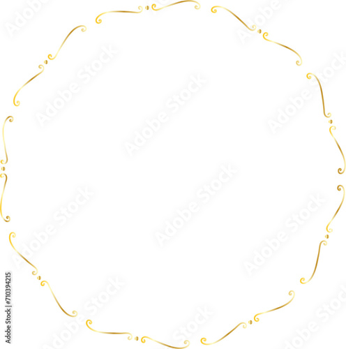 Golden decorative round frame vintage style illustration on transparent background.