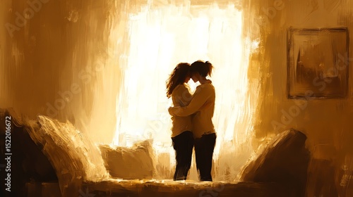 Golden Embrace: A Warmly Lit Couple's Intimate Moment