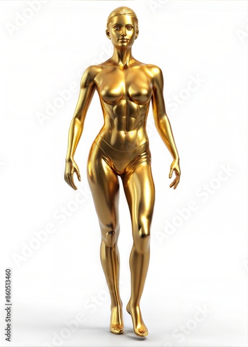Golden Female Figure Walking on White Background. Generative AI
