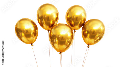 Golden festive balloons isolated on transparent background