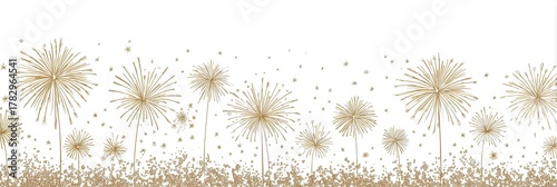 Golden fireworks on white background sparkling celebration display